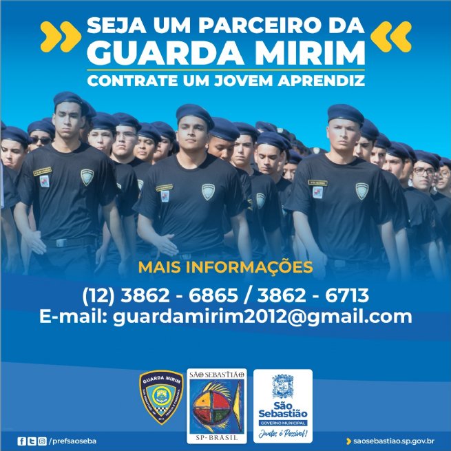 A Prefeitura de São Sebastião, por meio da Secretaria de Segurança Urbana (SEGUR), informa que através do programa socioeducativo Guarda Mirim (GM), os comerciantes locais podem contratar adolescentes pela Lei Federal 10.097/2000 Lei do Jovem Aprendiz.