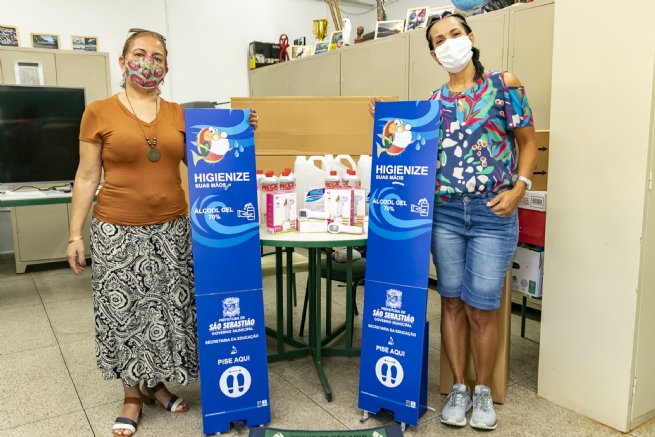 A Prefeitura de São Sebastião, por meio da Secretaria da Educação (SEDUC), segue investindo na aquisição e distribuição de materiais de proteção, higiene e limpeza, para garantir a segurança no ambiente escolar, como a instalação de totens dispensadores de álcool em gel em todas as 66 unidades escolares da rede municipal de ensino.