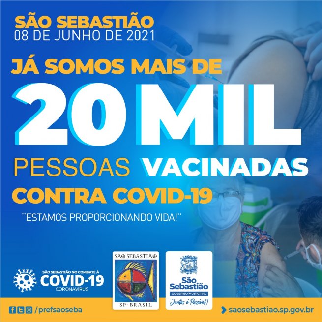 A Prefeitura de São Sebastião aplicou 20.624 primeiras doses de vacina desde o início da campanha contra a Covid-19, número que corresponde a 23% da população total do município.