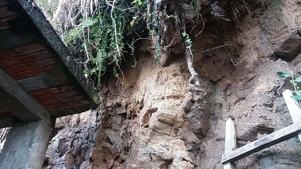 Devido à forte chuva desta última noite, algumas pedras e terra escorregaram sentido à residência, que fica encravada em uma encosta do bairro. O imóvel foi interditado preventivamente.