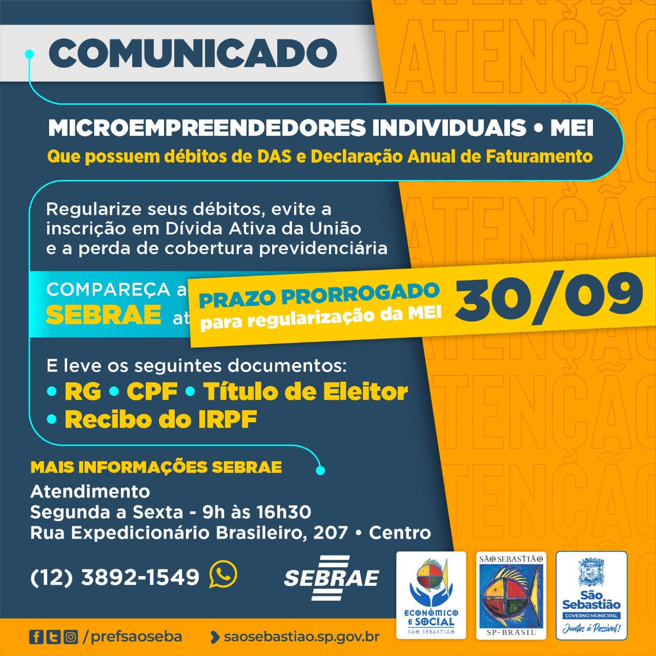 Os Microempreendedores Individuais (MEI) de São Sebastião podem regularizar seus débitos e documentações até 30 de setembro, data prorrogada pela Receita Federal.