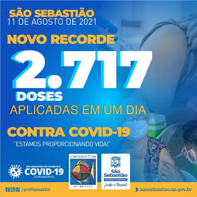 Na última quarta-feira (11), a Prefeitura de São Sebastião, por meio da Secretaria de Saúde (SESAU) e da Fundação de Saúde Pública (FSPSS), bateu seu próprio recorde no número de doses aplicadas em apenas um dia, foram 2.717 pessoas do grupo de 20 anos ou mais que receberam o imunizante.