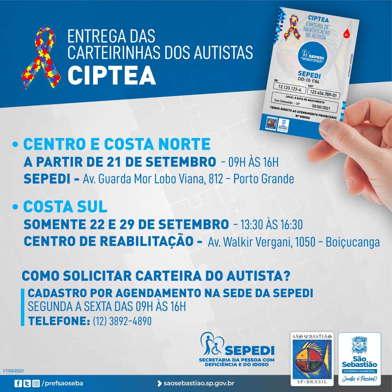 A Secretaria da Pessoa com Deficiência e do Idoso (SEPEDI) de São Sebastião informa que será distribuída aos usuários a Carteira Nacional de Identificação da Pessoa com Transtorno do Espectro Autista (CIPTEA).