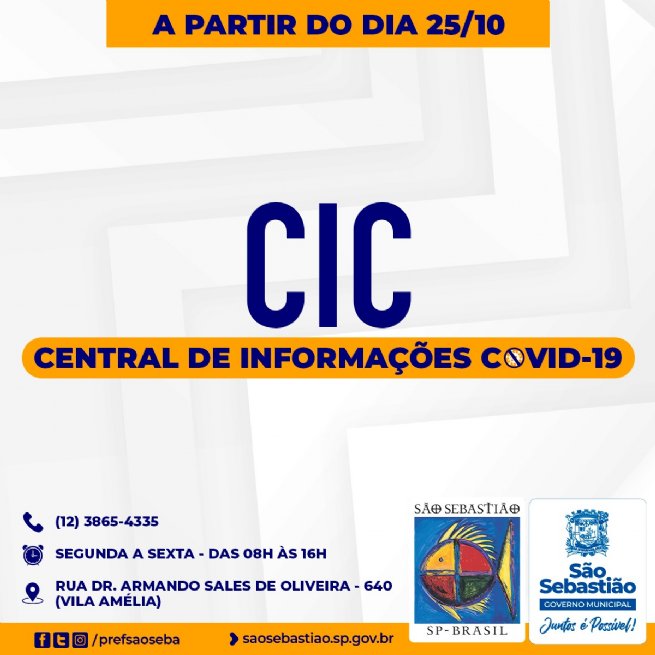 A partir da próxima segunda-feira (25), entrará em funcionamento a Central de Informações Covid-19 (CIC), uma iniciativa da Prefeitura de São Sebastião, por meio da Secretaria de Saúde (SESAU) e da Fundação de Saúde Pública (FSPSS), com o objetivo de esclarecer dúvidas dos munícipes sobre a vacinação contra a Covid-19.