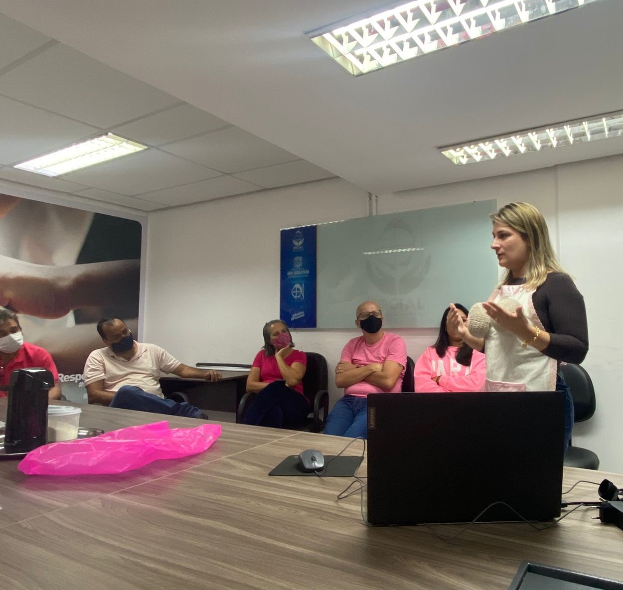 A equipe de trabalho da Secretaria de Desenvolvimento Econômico e Social (SEDES) da Prefeitura de São Sebastião participou nesta segunda-feira (18) da palestra sob o tema ‘Prevenção ao Câncer de Mama e Câncer do Colo do Útero’, ministrada pela enfermeira Izabelle Gonçalves, coordenadora do Núcleo de Ensino e Pesquisa da Fundação de Saúde Pública de São Sebastião (FSPSS), Secretaria de Saúde (SESAU).