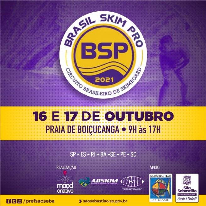 A Praia de Boiçucanga receberá nos dias 16 e 17 de outubro, a 1º Etapa do Circuito Brasileiro de Skimboard – 2º Boiçucanga Skim Pro 2021, realizado pela Associação Brasileira de Skimboard e Disco ABSKIM. O evento será apoiando pela Prefeitura de São Sebastião, por meio da Secretaria de Esportes (SEESP), e terá início às 9h.