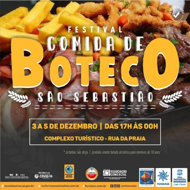 O Festival Comida de Boteco recebe também o apoio da Associação Comercial e Empresarial de São Sebastião, com patrocínio da Amstel.