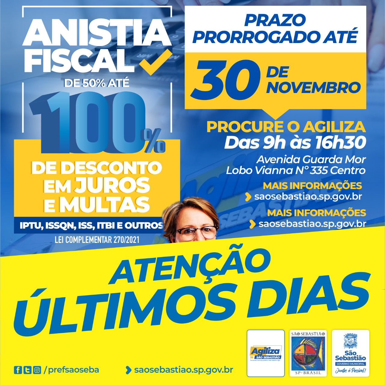 O programa de Anistia Fiscal da Prefeitura de São Sebastião, realizado pela Secretaria da Fazenda (SEFAZ), vai até a próxima terça-feira (30) e, para os contribuintes com débitos municipais pendentes, está sendo oferecido descontos de 50% a 100% sobre a multa e os juros das dívidas, a depender da negociação e forma de pagamento – saiba mais aqui.