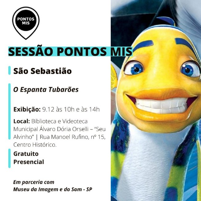 Nesta quinta-feira (09), às 10h e às 14h, a Prefeitura de São Sebastião, por meio da Fundação Educacional e Cultural “Deodato Sant’Anna” (Fundass), em parceria com o Governo do Estado de São Paulo e o Museu da Imagem e do Som de São Paulo, exibirá no programa Pontos MIS a animação “O Espanta Tubarões”, na Videoteca Municipal.