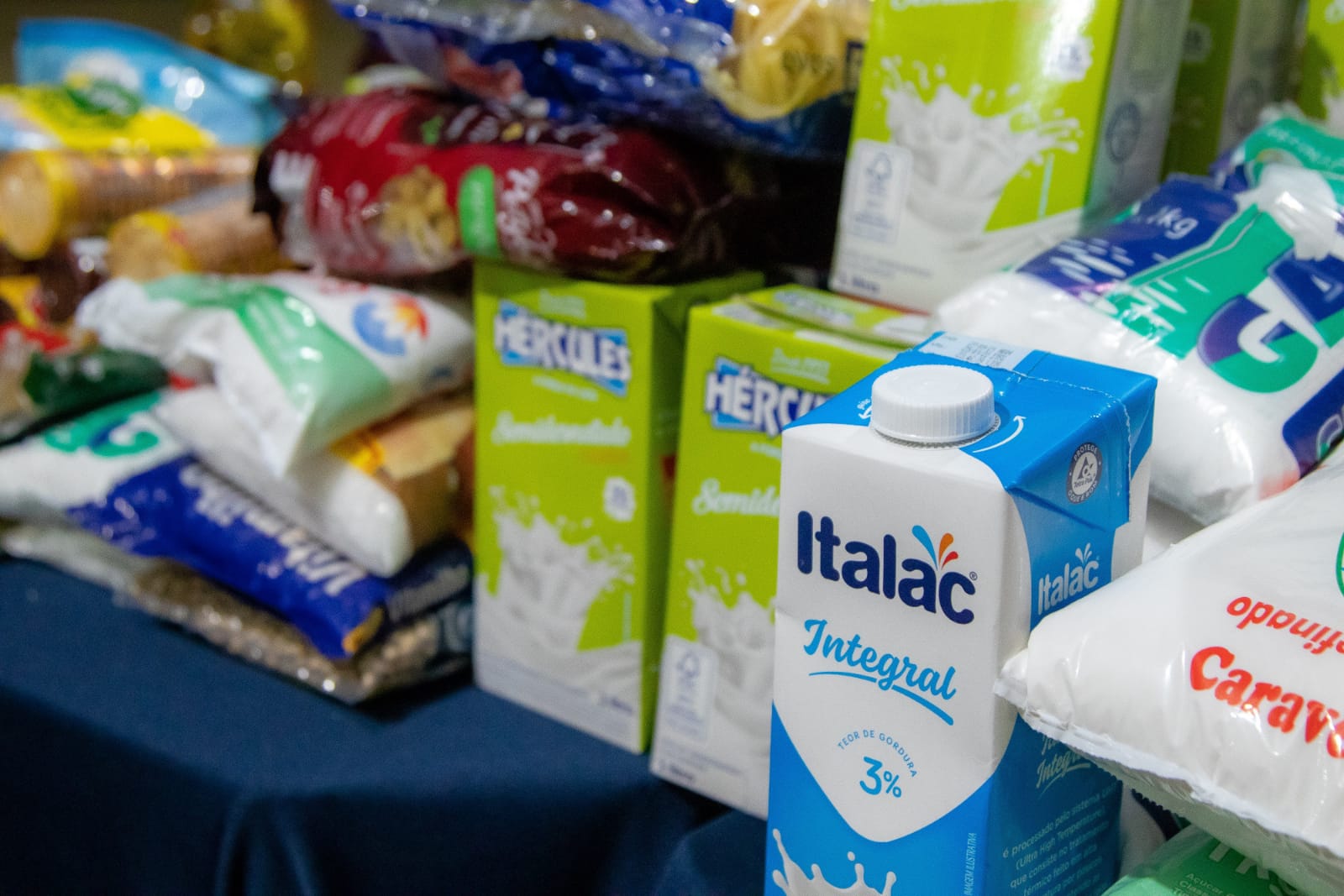 Podem ser doados itens como arroz, feijão, café, farinha, macarrão, óleo, fubá, leite em pó, temperos, molhos de tomates, entre outros.