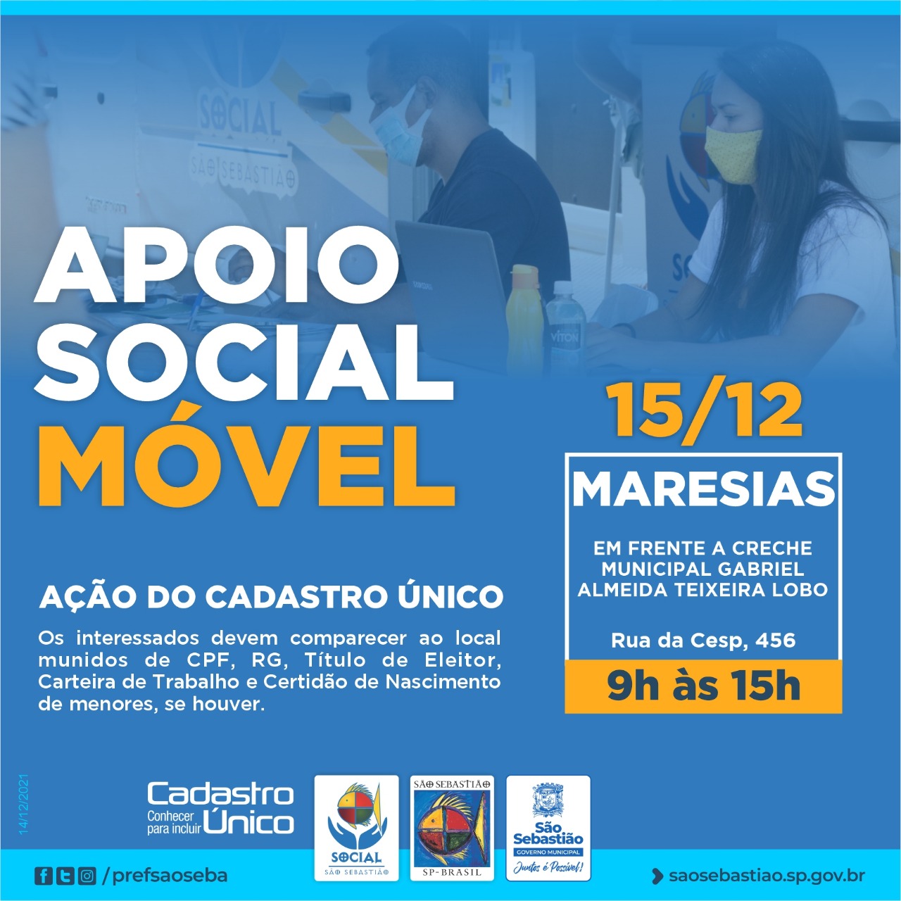 A Prefeitura de São Sebastião, por meio da Secretaria de Desenvolvimento Econômico e Social (SEDES), realiza o Apoio Social Móvel – que vai de bairro em bairro da cidade – para atendimento itinerante aos moradores – sobre assuntos relacionados ao Banco do Povo Paulista, ao Posto de Atendimento ao Trabalhador (PAT), aos benefícios cedidos pelos Governos Federal e Estadual, e às questões ligadas ao Centro de Referência da Assistência Social (CRAS) e Cadastro Único.