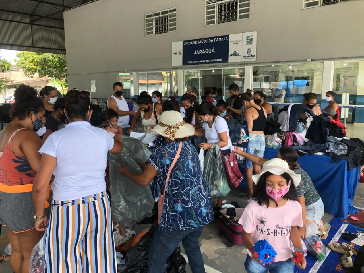 Além de entrega de cestas básicas as famílias referenciadas, Programa Viva Leite, Projeto Garoçá, e dos bairros Canto do Mar, Jaraguá e Enseada, houve também uma edição do Varal Solidário.