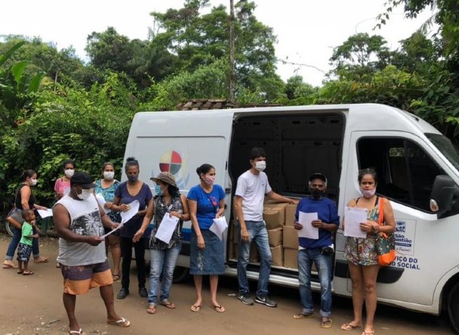 Em bairros, vilas e comunidades da cidade, e na Aldeia Rio Silveiras foram distribuídas 1.180 cestas de alimentos não perecíveis.