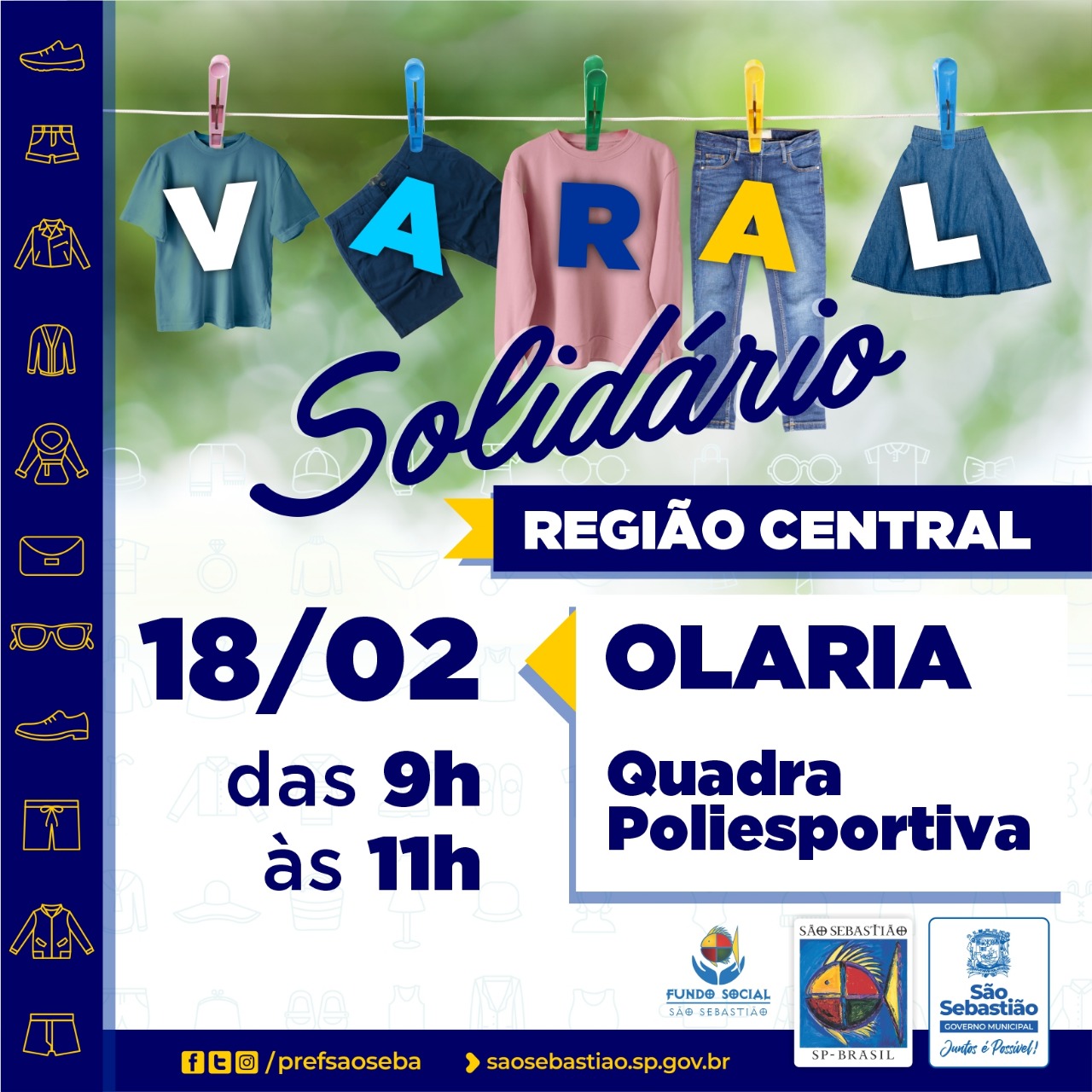 O Fundo Social da Prefeitura de São Sebastião vai realizar nesta sexta-feira (18), Varal Solidário, das 9h às 11h, na quadra poliesportiva do bairro Olaria.
