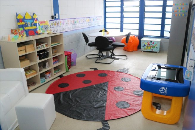 #PraTodosVerem: foto mostra sala de recurso em creche da rede municipal de ensino de São Sebastião. Fim da descrição.