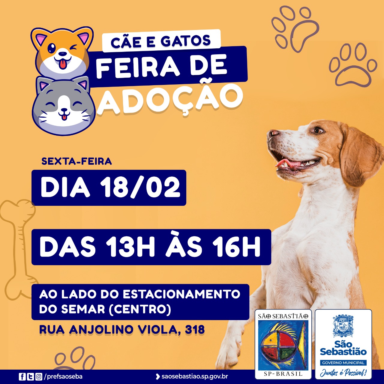 A Prefeitura de São Sebastião, por meio do Centro de Controle de Zoonoses (CCZ), vinculado à Secretaria de Saúde (SESAU), realiza, nesta sexta-feira (18), uma Feira de Adoção de Cães. O evento será das 13h às 16h ao lado do Estacionamento do Supermercado Semar, na Rua Anjolino Viola, n.º 318, no Centro. Em caso de chuva, o evento poderá ser cancelado.