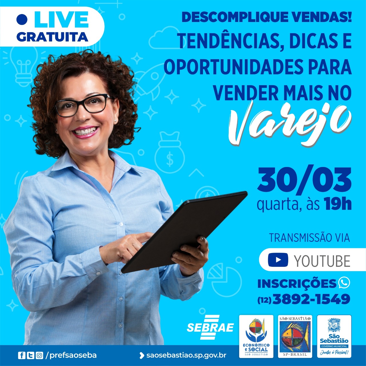 A Prefeitura de São Sebastião, por meio da Secretaria de Desenvolvimento Econômico e Social (SEDES), Posto de Atendimento ao Trabalhador (PAT), Departamento de Emprego e Renda, em parceria com o Serviço Brasileiro de Apoio às Micro e Pequenas Empresas (SEBRAE) realiza dia (30), quarta-feira, às 19h, o curso on-line gratuito ‘Descomplique Vendas – Tendências Dicas e Oportunidades para Vender mais no Varejo’ que faz parte do Programa Descomplique.