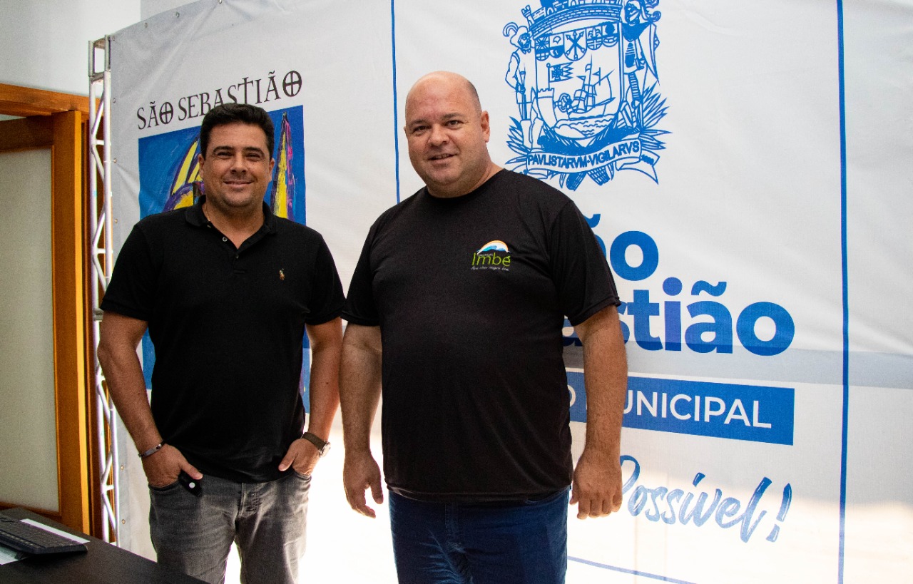 #PraTodosVerem: foto do presidente da ABRAMT, Luís Henrique Vedovato, na visita realizada na quarta-feira (6), à prefeitura de São Sebastião, onde foi recebido pelo prefeito Felipe Augusto. Fim da descrição.