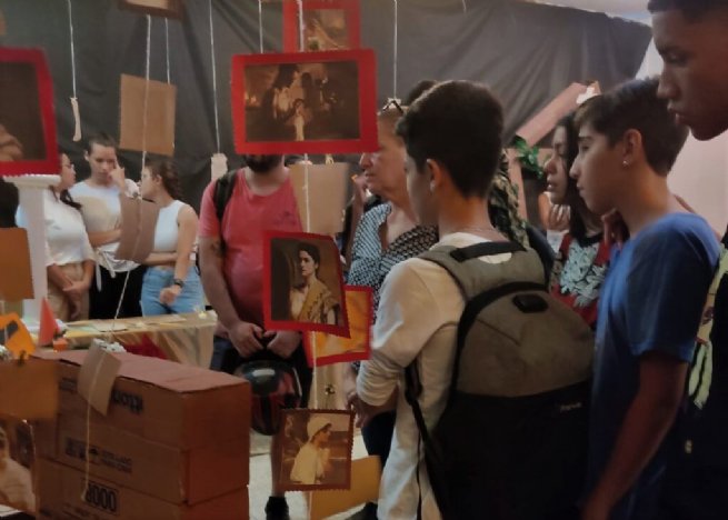 A escola técnica os recebeu com uma exposição temática, onde os alunos haviam desenvolvido trabalhos em homenagem à personalidades históricas, como Stephen Hawking, Marie Curie e Leonardo da Vinci, de acordo com o tema “Grandes Personalidades da Arte e da Ciência”.