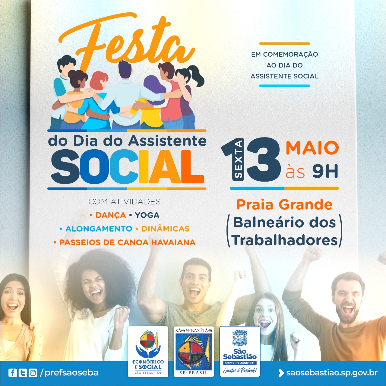 A Prefeitura de São Sebastião, por meio da Secretaria de Desenvolvimento Econômico e Social (SEDES), em alusão ao Dia do Assistente Social, comemorado em 15 de maio, vai realizar dia (13), sexta-feira, às 9h, na Praia Grande (Balneário dos Trabalhadores), encontro dos profissionais do setor.