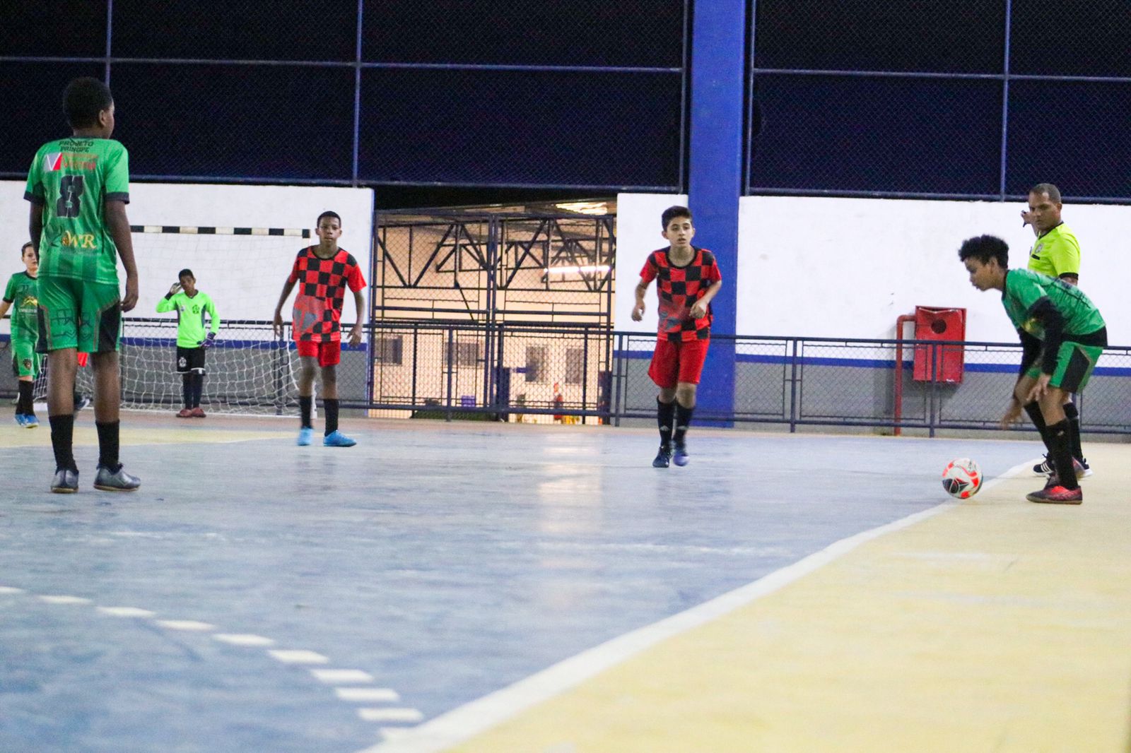 #PraTodosVerem: Fotos de competições da Retomada Esportiva de Futsal, realizadas no ginásio Poliesportivo do Jaraguá- “Solange dos Santos”. Fim da descrição.