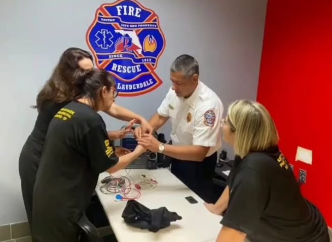 Eles foram recebidos pelo Capitão do Corpo de Bombeiros de Fort Lauderdale (EUA), Gabriel Zahora, que os acompanhou em uma visita técnica à 53ª Estação de Bombeiros.