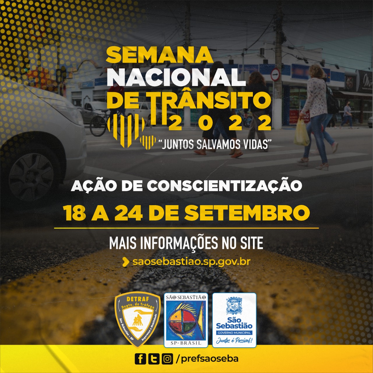 A Prefeitura de São Sebastião, por meio do Departamento de Tráfego (DETRAF), vinculado à Secretaria de Segurança Urbana (SEGUR), prepara a participação do município na Semana Nacional de Trânsito, trazendo o tema “Juntos Salvamos Vida”, abordando a tolerância humana aos impactos dos acidentes de trânsito, e será desenvolvida de 18 a 24 de setembro.