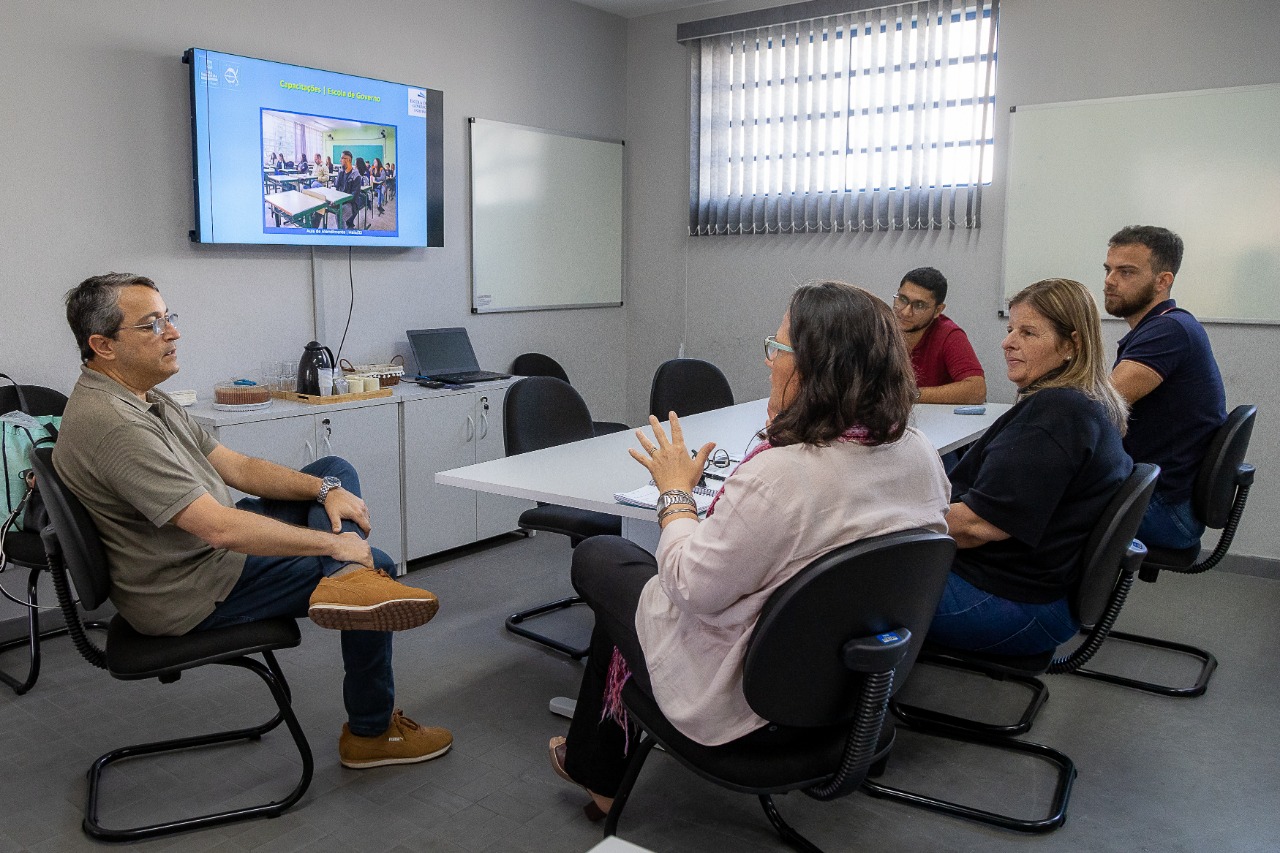Durante a visita, os membros da equipe puderam trocar experiências e conhecer o fluxo de trabalho da Escola de Governo e Gestão da Prefeitura de São Sebastião, com uma apresentação do histórico de ações e implantação da Escola de Governo.