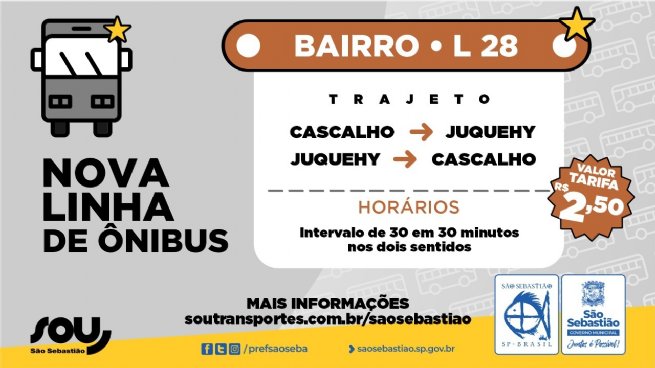 Com o intuito de reforçar as linhas e a qualidade do serviço de transporte público de São Sebastião, a empresa SOU São Sebastião anunciou uma nova linha que fará o trajeto da Estrada do Cascalho em Boiçucanga até o bairro de Juquehy.