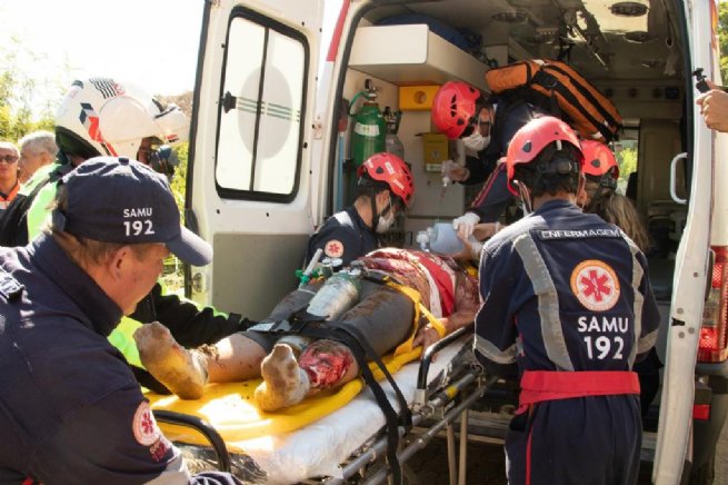 Serão simulados atendimentos a oito vítimas, resgatadas na área de risco pelos bombeiros e levadas até o posto médico para atendimento pela equipe do SAMU, composta por um médico, dois enfermeiros e três técnicos, além dos coordenadores de área e suporte.