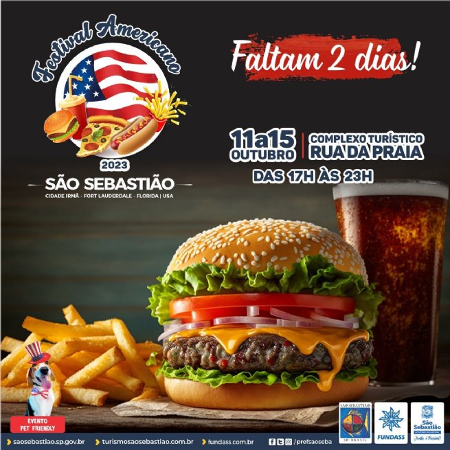 De 11 a 15 de outubro, a Prefeitura de São Sebastião, por meio da Secretaria de Turismo (SETUR) e da Fundação Educacional e Cultural “Deodato Sant’Anna” (Fundass), realiza a edição 2023 do Festival Americano, no Complexo Turístico da Rua da Praia, no Centro Histórico, das 17h às 23h.