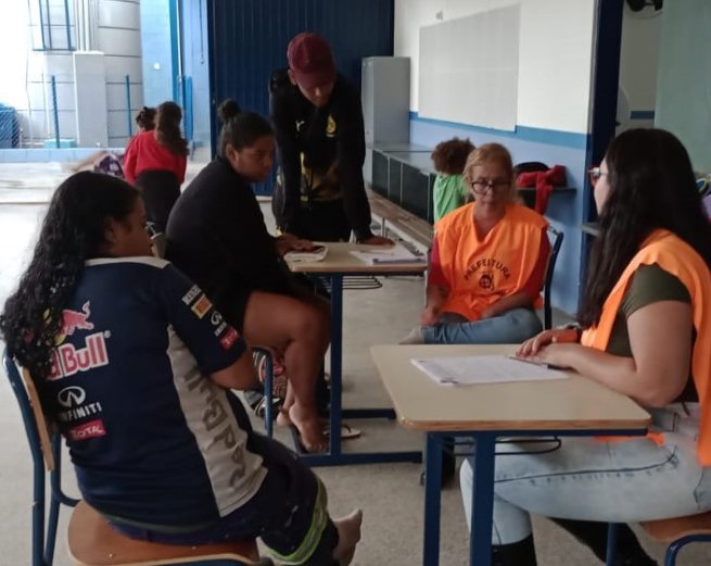 Já na EM Henrique Tavares de Jesus são mais cinco famílias, sendo nove adultos, dos quais três são homens e seis são mulheres, entre eles, um idoso, um PcD e nove crianças. Há ainda dois homens e uma mulher que são solteiros, totalizando 21 pessoas.