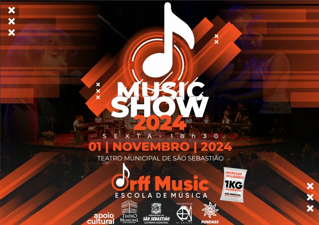 O Music Show 2024 é realizado pela Orff Music Escola de Música e conta com o apoio da Prefeitura de São Sebastião, por meio da Fundação Educacional e Cultural ‘Deodato Sant’Anna’ (Fundass).