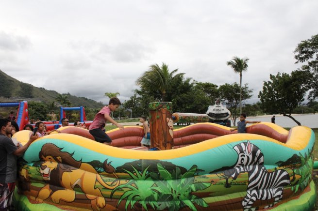 Durante a ação, as crianças vão aproveitar os brinquedos infláveis escorregador gigante, pula-pula, futebol de sabão, além de muita pipoca, algodão doce e música.