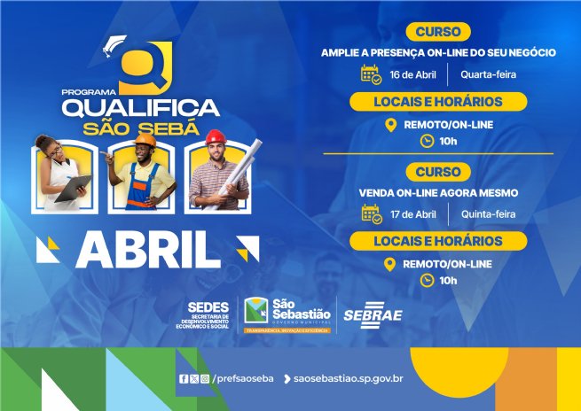 A Prefeitura de São Sebastião, por meio da Secretaria de Desenvolvimento Social (Sedes), em parceria com o Sebrae, está oferecendo dois cursos on-line gratuitos voltados para empreendedores que desejam ampliar a presença digital e aumentar suas vendas.