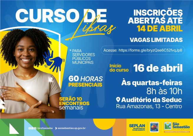 Com o objetivo de tornar o atendimento público mais acessível, empático e inclusivo, a Prefeitura de São Sebastião, por meio da Escola de Governo e Gestão da Secretaria de Planejamento (Seplan), em conjunto com a Secretaria da Educação (Seduc), oferecerá o curso de Libras – Língua Brasileira de Sinais, voltado exclusivamente para servidores públicos municipais.
