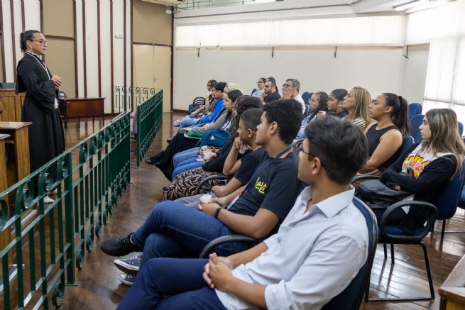 A visita começou no Fórum da Comarca de São Sebastião, onde puderam observar o funcionamento do poder Judiciário local, além de entender a estrutura e atribuições dos juízes e servidores, tendo a oportunidade também de conversar com a juíza Gláucia Fernandes Paiva.
