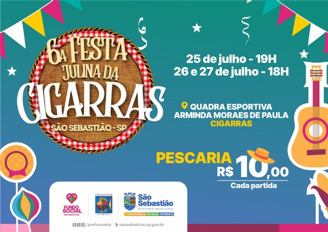 O Fundo Social de São Sebastião estará na 6ª Festa Julina da Cigarras com a já conhecida Barraca da Pescaria Solidária. O evento será realizado nos dias 25, 26 e 27 de julho, na Quadra Esportiva Arminda Moraes de Paula, com entrada gratuita.