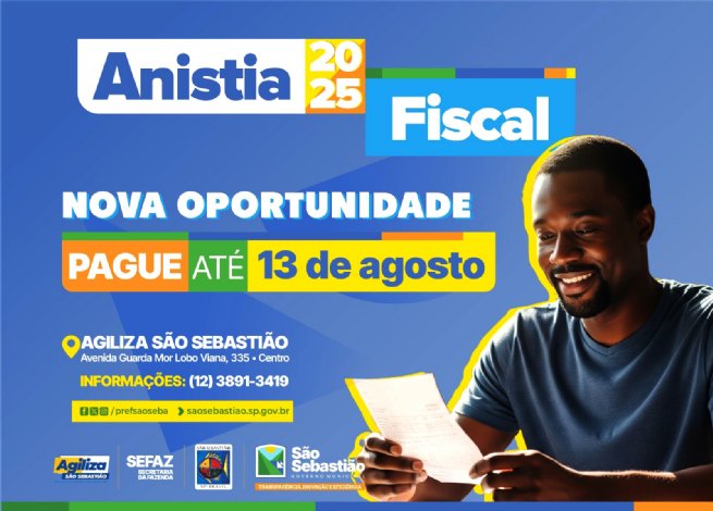 A Prefeitura de São Sebastião, por meio da Secretaria da Fazenda (Sefaz), prorrogou para 13 de agosto o prazo para que contribuintes possam regularizar seus débitos com o município por meio da Campanha de Anistia Fiscal. O Decreto 9.800 foi assinado na quinta-feira (10/7) pelo prefeito Reinaldinho Moreira e entra em vigor no dia 15 de julho. Os descontos podem chegar até 100% em juros e multa.