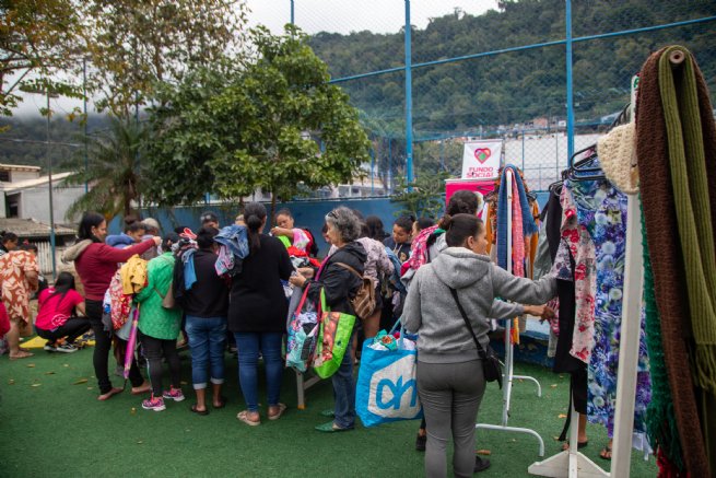Foram disponibilizadas cerca de 1.300 peças de roupas, 70 pares de calçados, 45 brinquedos e 40 acessórios, todos organizados com de forma que os moradores pudessem escolher os itens com dignidade e conforto.
