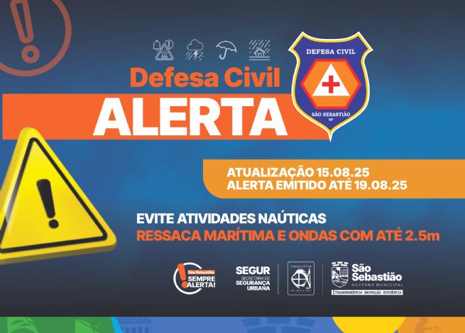 A Marinha do Brasil emitiu um alerta pra a formação de ressaca marítima e ondas que podem chegar a 2,5 metros a partir deste sábado (16/8) até domingo (17/8) entre os Estados de São Paulo e Rio de Janeiro.