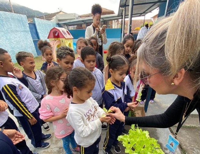 #PraTodosVerem: As imagens registram momentos especiais do projeto ‘Horta para Todos’, com plantação de verduras fresquinhas, crianças e educadores aprendendo juntos o valor do cultivo. Fim da descrição.