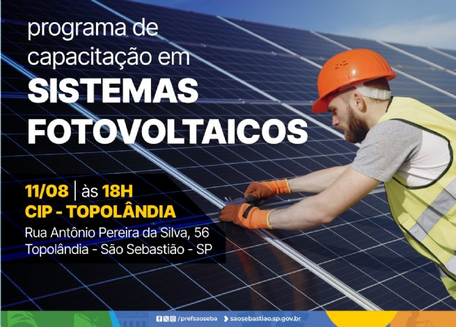 A Prefeitura de São Sebastião, em parceria com a EDP, realiza na próxima segunda-feira (11/08), às 18h, o lançamento do Programa de Capacitação em Sistemas Fotovoltaicos, no Centro Integrado Profissionalizante (CIP), localizado no bairro Topolândia.