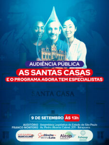 Na próxima terça-feira (09/09), na Assembleia Legislativa do Estado de São Paulo (Alesp), o deputado estadual Luiz Claudio Marcolino promoverá uma audiência pública para discutir as Santas Casas e o Programa Agora Tem Especialistas, do Ministério da Saúde, que já confirmou presença de representantes.