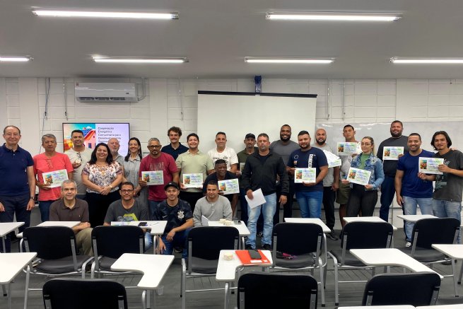 Além de cumprirem os treinamentos obrigatórios conforme normas do Ministério do Trabalho e Emprego, os alunos também participaram de um curso técnico complementar sobre fundamentos dos sistemas solares fotovoltaicos.