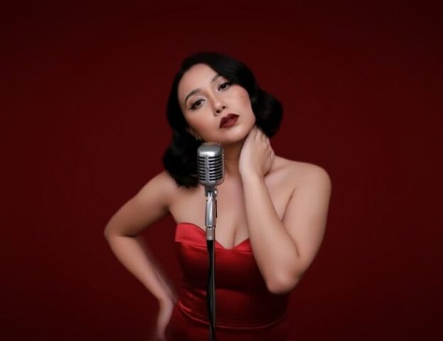 #PraTodosVerem: A primeira imagem destaca uma mulher de cabelos pretos ondulados e batom carmim, vestindo um vestido tomara que caia vermelho e posando com a mão no pescoço diante de um microfone vintage em um fundo bordô. A segunda imagem mostra a fachada da Casa de Câmara e Cadeia de São Sebastião, um edifício histórico amarelo e branco com telhado de barro, situado em uma praça com montanhas ao fundo sob um céu claro. Fim da descrição.